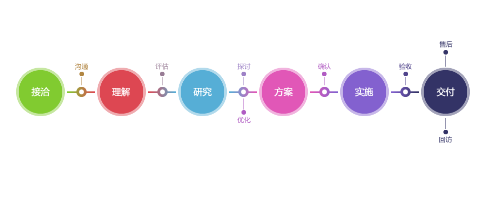 清晰、可視、可持續(xù)改進的研發(fā)流程服務(wù),在每個環(huán)節(jié)我們都秉承著打造高品質(zhì)移動互聯(lián)網(wǎng)解決方案的開發(fā)理念。